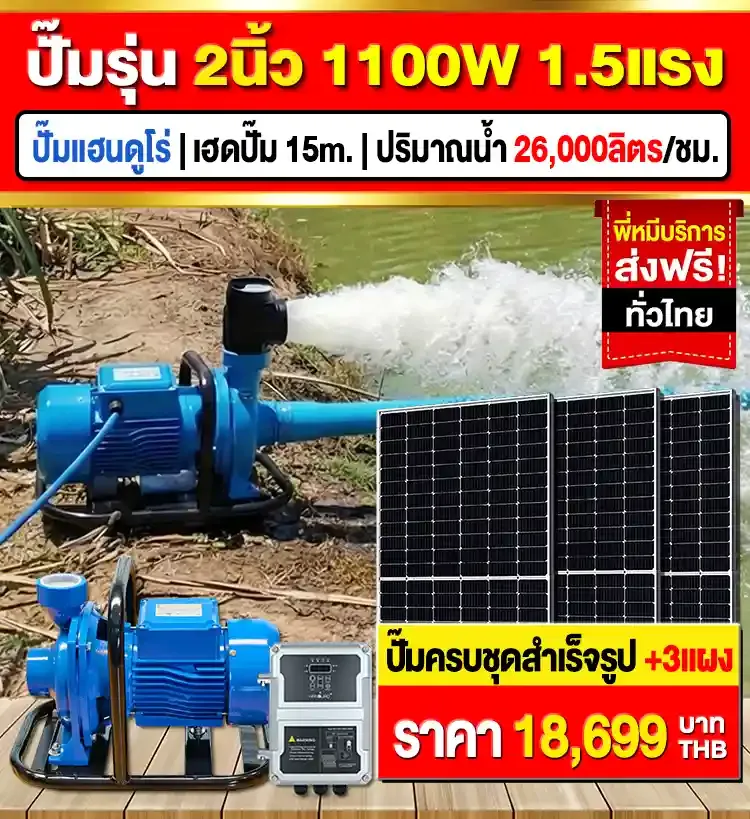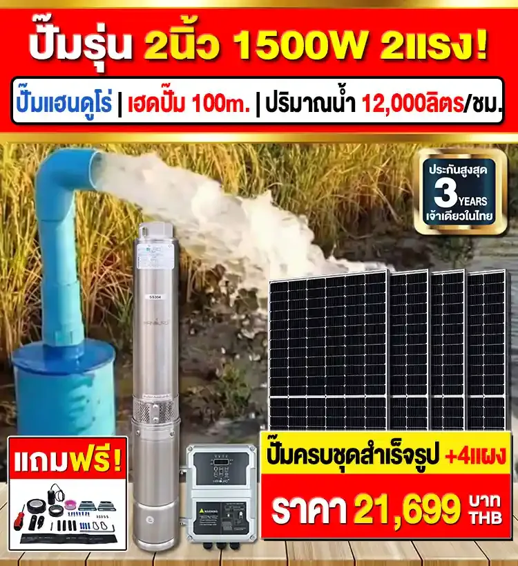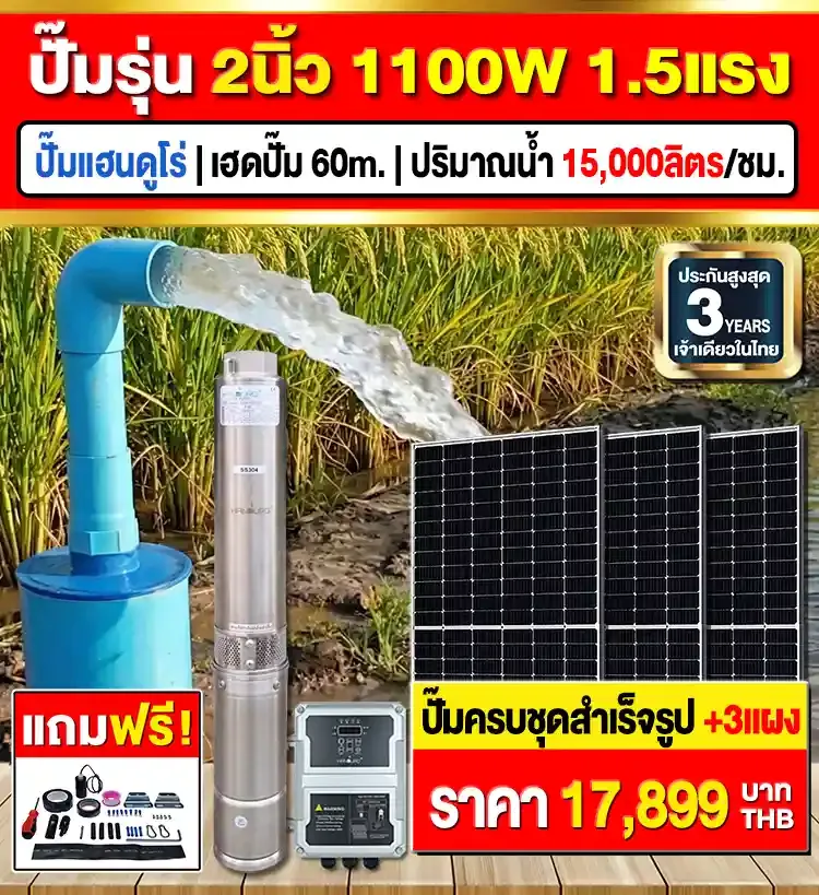 - รีวิว ★★★★★ | ปั๊มรุ่นนี้ ให้น้ำเยอะเยอะมาก ผมนำมาใช้ผันน้ำเข้านา ประหยัด ใช้ไฟฟรี จากแดดได้ทุกวัน ไม่ต้องจ่ายค่าไฟอีกต่อไป -ลุงบุญมี/ทำสวน จ.จันทบุรี